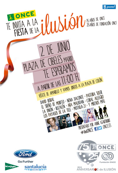 cartelonceONCE y su Fundación celebran, el domingo 2 de junio, su 75 y 25 aniversario, respectivamente.