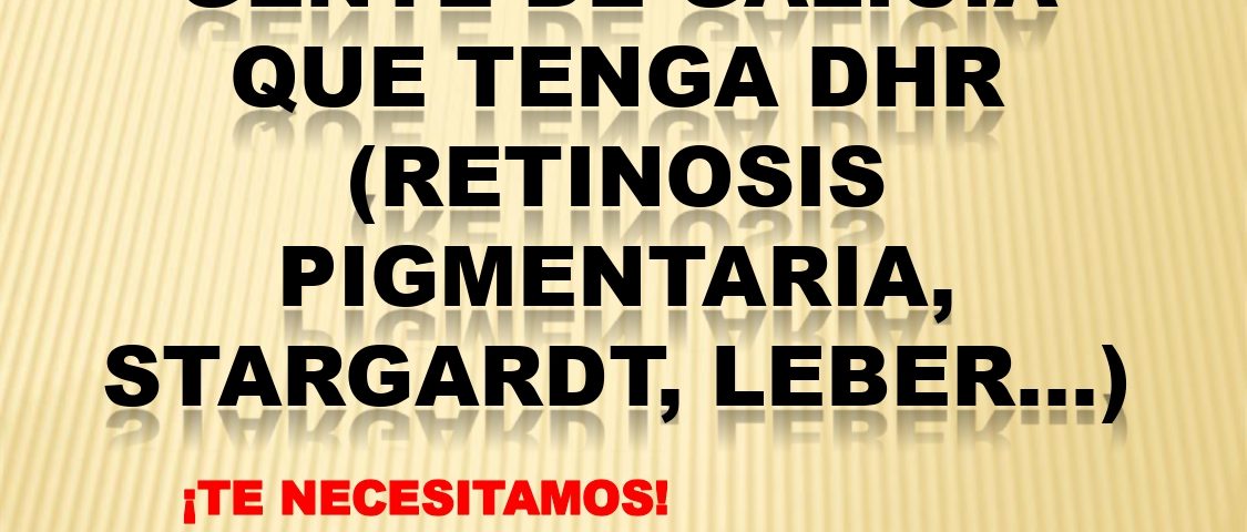 Desde FARPE-FUNDALUCE estamos buscando personas que quieran colaborar para la Formación de la Asociación Retina Galicia. Si tienes alguna de estas afecciones, Distrofias Hereditarias de Retina, Leber, Stargardt…, o trabajas con ellos o tienes algún familiar…ponte en contacto con nosotros. Somos la Federación de Asociaciones de Distrofias Hereditarias de Retina de España, y junto con nuestra Fundación Lucha Contra la Ceguera, queremos acercar a los gallegos y gallegas que padezcan esta enfermedad rara, nuestra experiencia, ayuda y asesoramiento. CONTACTA CON NOSOTROS