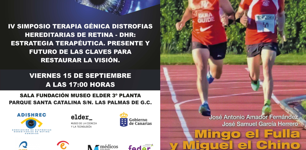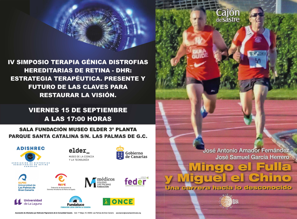 Por otro lado, desde la asociación canaria, nos informan de la publicación, por parte de uno de sus socios, del libro “Mingo el Fulla y Miguel el Chino. Una carrera hacia lo desconocido”, que nos trasladará a un emocionante relato de superación y lucha contra la adversidad y las dificultades de una enfermedad que le acompaña desde la niñez, apoyándose en el atletismo. Los beneficios que se obtengan de este libro serán destinados a la Asociación de Distrofias Hereditarias de Retina Canarias.
