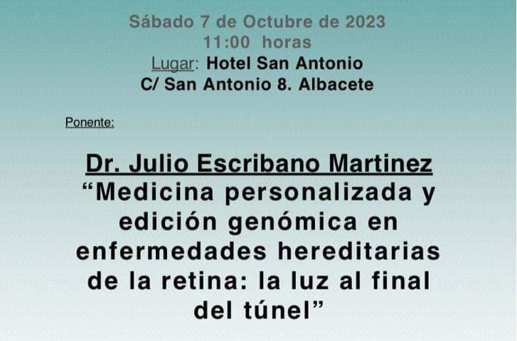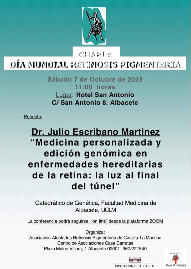 La Asociación de Afectados de Retinosis Pigmentaria de Castilla-La Mancha organizó una charla a cargo del Catedrático de genética de la Facultad de Medicina de Albacete, Julio Escribano Martínez, el sábado 8 de octubre