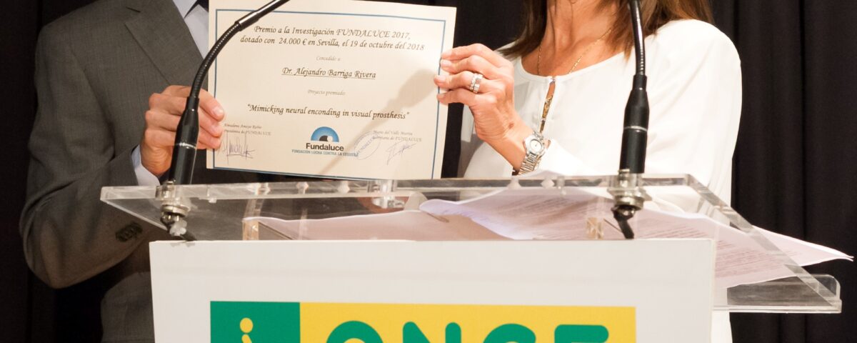 Con este premio, la Fundación Lucha Contra la Ceguera (FUNDALUCE), ayuda a financiar el Proyecto de Investigación “Mimicking neural enconding in visual prosthesis”.