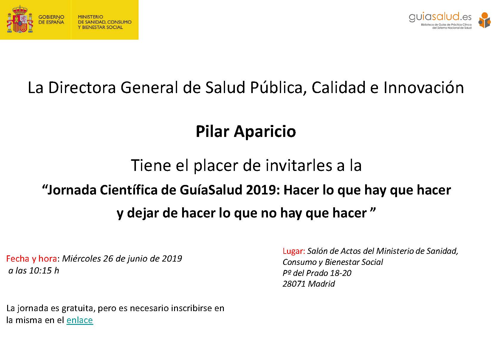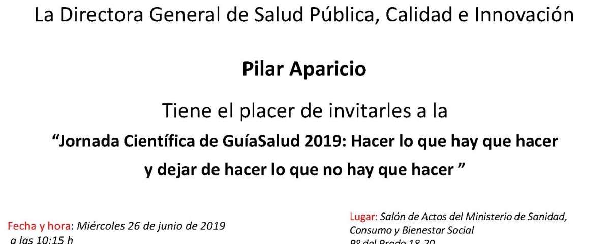 La Jornada está organizada por la Dirección General de Salud Pública, Calidad e Innovación del Ministerio de Sanidad, Consumo y Bienestar Social (MSCBS) en colaboración con el Instituto Aragonés de Ciencias de la Salud como Secretaría de GuíaSalud.