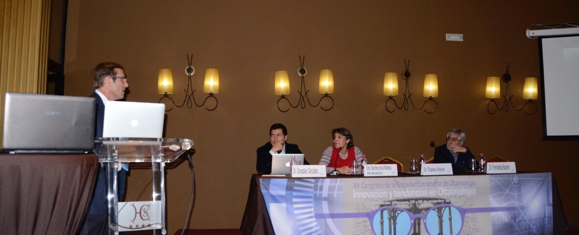El pasado 25 de Noviembre tuvo lugar la presentación, en el Cortijo de Santa Cruz, sede del XV Congreso regional de la Sociedad Extremeña de Oftalmología (SEOF), del “PROTOCOLO DE DIAGNÓSTICO Y SEGUIMIENTO DE LOS PACIENTES CON DISTROFIAS RETINIANAS Y COROIDEAS HEREDITARIAS” ya aprobado y respaldado por el Servicio Extremeño de Salud (SES). Ya en la presentación del acto, y en representación del Consejero de Salud, el Dr. Ceciliano Rubio Franco, Director Gerente del SES remarcó la importancia de la presentación de la guía en el congreso.